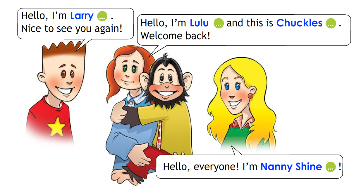 Вводный урок - вспоминаем действующих лиц. Ларри, Лулу, обезьянку Чаклз и Нэнни Шайн.